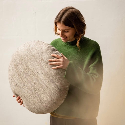 Großes Fußbodenkissen von MUSKHANE in weichem Wollfilz gefüllt mit natürlicher Kapok-Baumwolle …herrlich zum Spielen, Sitzen, Yoga usw.