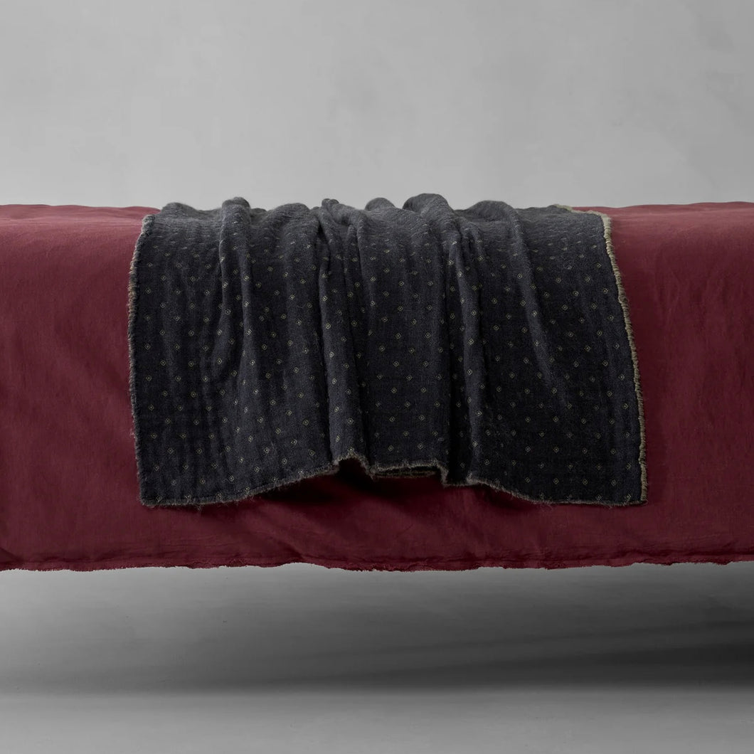 TAI is a throw with a dandy look, geometric and rigorous, with a tailored aesthetics. Made of four layers of pure virgin wool, it is embellished by an exquisite contrasting tie motif that highlights its distinctive character. Soft to the touch and with a textured finishing, TAI adds a touch of discreet elegance to the bedroom.