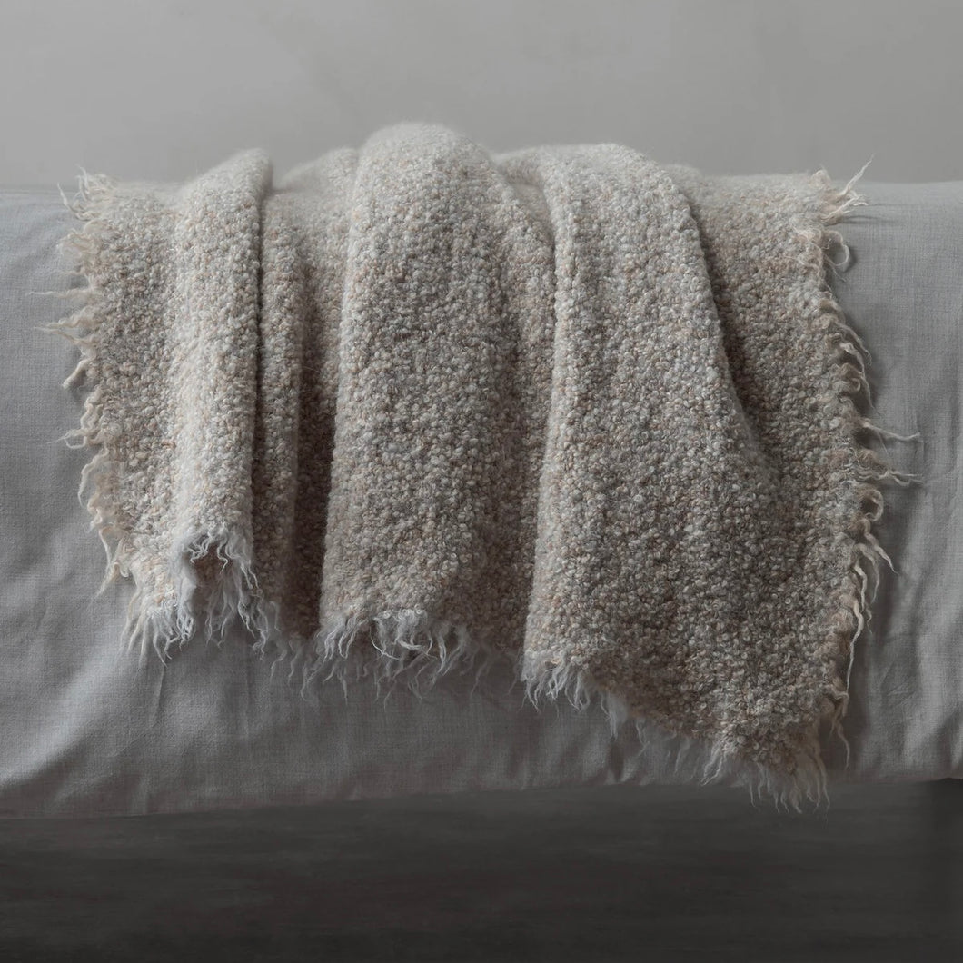 Feine Alpaka-Wolldecke mulicolor Fäden Multi throw is warm, soft and embracing, perfect for the bed or on the sofa for a comforting cuddle. A soft alpaca bouclé with a wool blend effect in a range of colours. 100% ALPACA wool 130×180 cm 245.0 gr./mq.