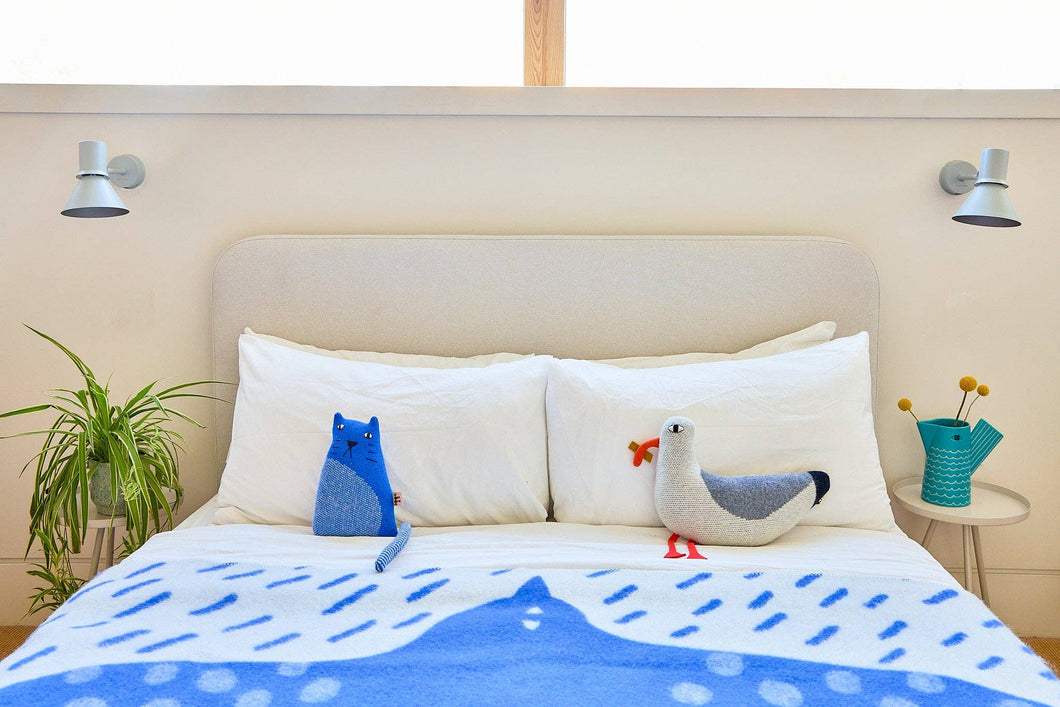 Unsere Möwe ist aus 100% Lammwolle gestrickt. Wir stricken alle unsere Lammwoll-Kreaturen in unserem Strickladen in Dundee mit den weichsten Garnen. Jede wird dann von Hand zusammengesetzt und bestickt – den Namen des Herstellers jeder Kreatur finden Sie auf ihrem Kartonetikett. Wir verpacken jede in einem Baumwollbeutel mit Kordelzug und geben jeder Kreatur einen kleinen Druck, bevor wir sie in ihr neues Zuhause schicken.