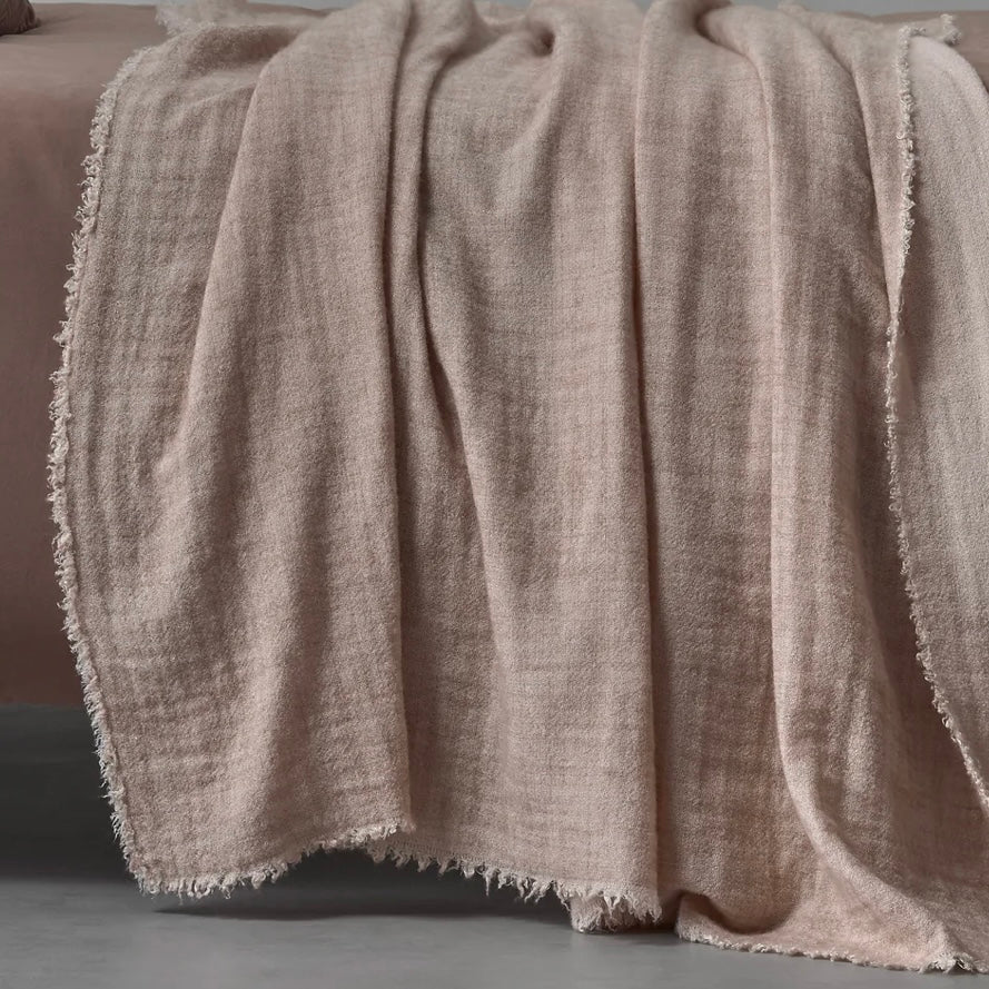 Tiub is an extra light double faced throw in cashmere and silk, with one side in a solid colour and the other with a melange effect. A warm and cosy hug, perfect to be used on the bed or on the sofa.